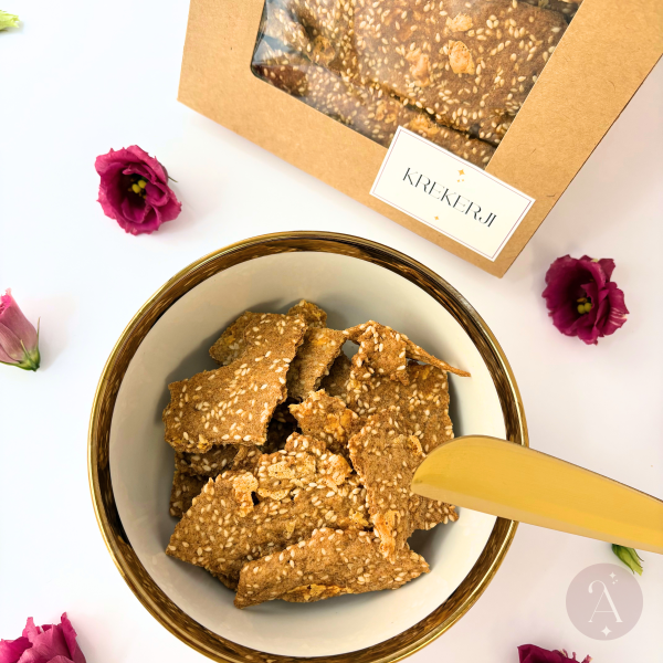 Naši brezglutenski slani krekerji s sezamom so popolna izbira za vse, ki prisegajo na lahkotne, a okusne prigrizke. Hrskavi, rahlo soljeni in obogateni z aromatičnim sezamom navdušujejo s svojo preprosto, a dovršeno sestavo. Idealni so kot samostojen prigrizek ali kot spremljava k namazom, sirom in sveži zelenjavi. Brez glutena, brez kompromisov pri okusu.