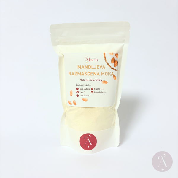 Mandljeva razmaščena moka je pridobljena iz fino mletih mandljev po postopku odstranjevanja maščobe. Ima visoko vsebnost beljakovin in prehranskih vlaknin. Primerna je za peko, kuhanje in obogatitev različnih živil.