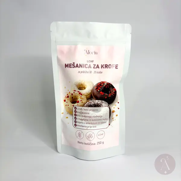 Mešanica za LCHF krofe omogoča enostavno pripravo domačih krofov brez glutena in brez dodanega sladkorja – mehkih, okusnih in nizkohidratnih.