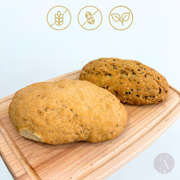 Naš ročno pripravljen kruh je popolnoma brez glutena, jajc, mleka in drugih živalskih sestavin. Primeren za vegane, celiakaše in vse, ki iščejo hranljiv in lahek kruh brez kompromisov pri okusu. Naravne sestavine, poln okus – brez kompromisov.
